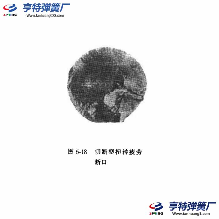前面介绍的几种疲劳裂纹形式的共同特点是,裂纹一旦点形成,裂纹一般都沿与最大拉伸正应力相垂直的方向扩展。但对扭转疲劳,就会出现两种可能的破坏方式,一类为正断型,裂纹沿与最大拉伸正应力的方向扩展,形成与轴纹成45度夹角的斜断口,一般脆性材料以这种方式断裂;一类是切断型,裂纹沿最人切应力方向扩展,形成与轴线相垂直的平断口,一般塑性材料以这种方式断裂。