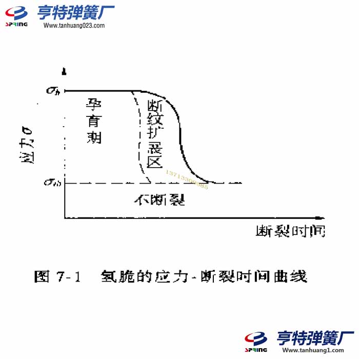 弹簧材料在加工制造过程中,以及在使用环境中受到氢的侵人,氢在弹簧材料中扩散并聚集,使弹簧材料的承载能力降低、塑性下降,材料脆化。经过一段时间后,弹簧在低于屈服强度的拉应力作用下突然发生断裂,把这种现象称为氢脆。